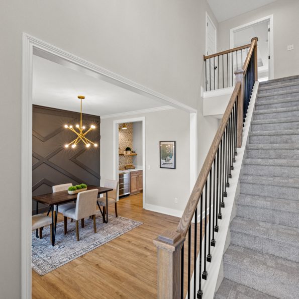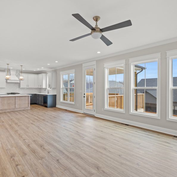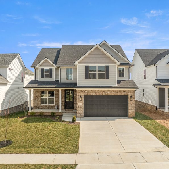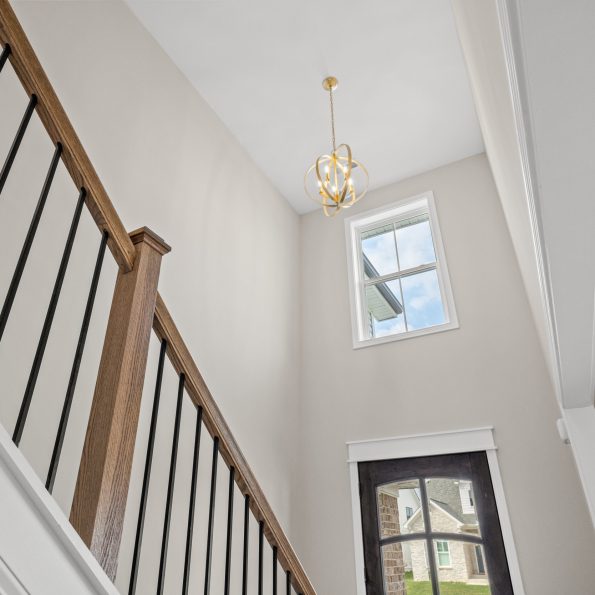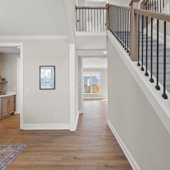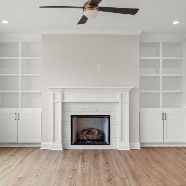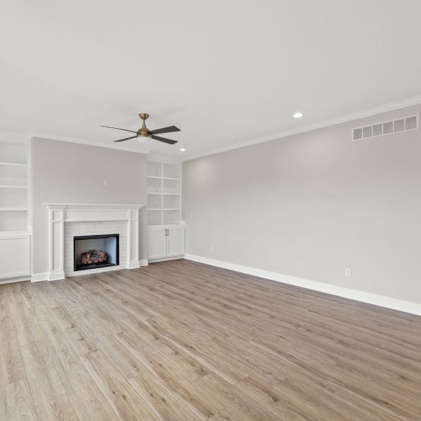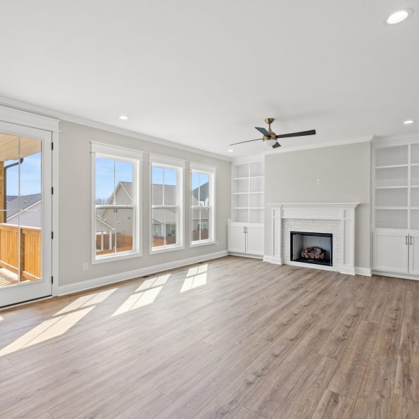 Two floors, with two car garage, optional butlers pantry/e-space with walk-in pantry with built in cabinet, open floor plan, built in bookshelves, direct vent fireplace, pantry and island in kitchen, and drop zone off the garage. Also includes Flex Room that can be used as formal dining, home office, library and reading nook, or formal living room. Option of Covered Deck/Patio that is 16′ x 12′.