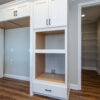 Two floors, with two car garage, optional butlers pantry/e-space with walk-in pantry with built in cabinet, open floor plan, built in bookshelves, direct vent fireplace, pantry and island in kitchen, and drop zone off the garage. Also includes Flex Room that can be used as formal dining, home office, library and reading nook, or formal living room. Option of Covered Deck/Patio that is 16′ x 12′.