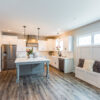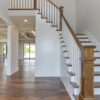 One and half floors, with two car garage, open floor plan, built in cubby bench in mud room, optional laundry cabinets, mud sink optional, built-in bookcases in family room, direct vent fireplace. Dining area leads to covered porch. Upstairs there is fourth bedroom, all other bedrooms are on first floor.